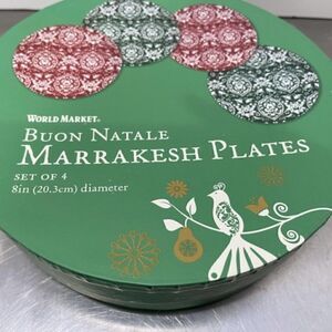 Set of 4 World Market Buon Natale Marrakesh Vintage Christmas 8" Plates Unused