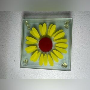 Set of 4 Yellow Flower Glass Coasters pictures provide area circled wears a black mark on the edge of the glass
