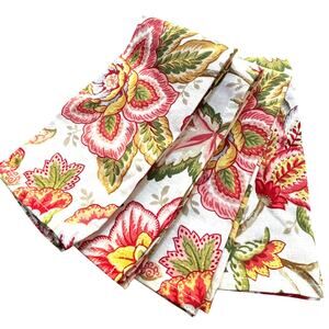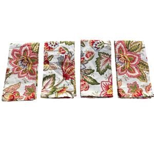 100% cotton cloth napkins - a matching set of 4 that are pre-owned but in like new condition - done in a beautiful Jacobean flowers motif - creamy white with colorful pink, yellow & green floral design. In excellent condition - ready to use!