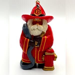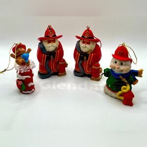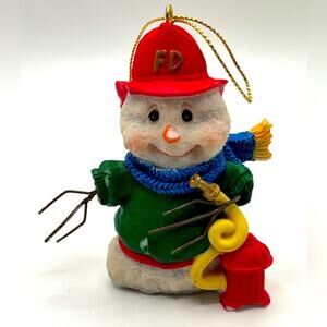 First one (with the bear) is plastic, two firemen are wood, and snowman is resin