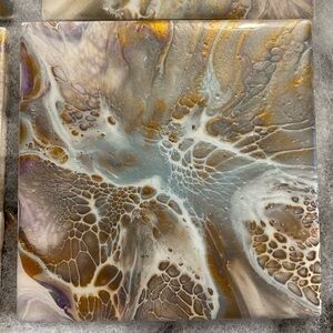 Set of 4 hand painted coasters. Sealed with resin cork backing