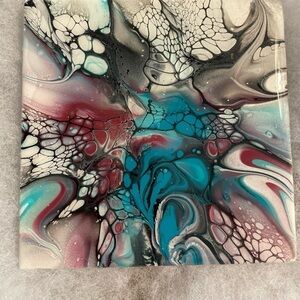 Set of 4 hand painted coasters. Sealed w/resin cork backing Turquoise & purple