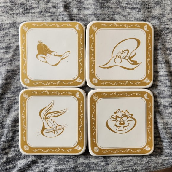 Set of 4 looney tunes ceramic coasters, vintage, made for the Warner Brothers studio store in 1994...B4
