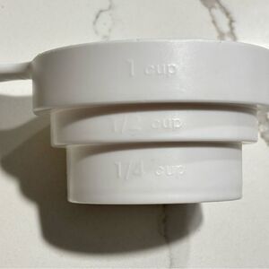 Durable and easy-to-clean white measuring cups set, perfect for all your kitchen needs.