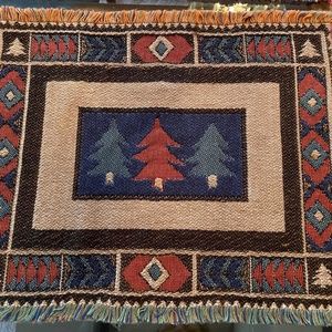 Multicolored (tan/rust red/blue/green) table placemats