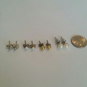 EUC. Cute rounds earrings in various sizes. Great multi-use set. Some wear/discoloring possible due to age, not use, especially in the backings of the earrings. All cleaned with alcohol swabs for disinfecting purposes. Otherwise in good used condition (but barely worn if at all). Dime is shown for sizing purposes only.