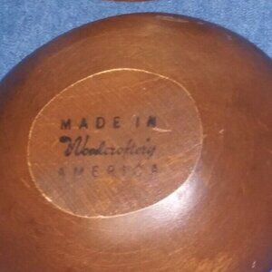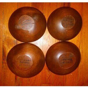 Set of 4 wood bowls VTG WOODCRAFTERY MADE IN AMERICA ovoid RUSTIC FARMHOUSE