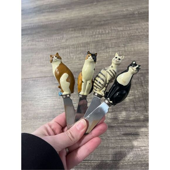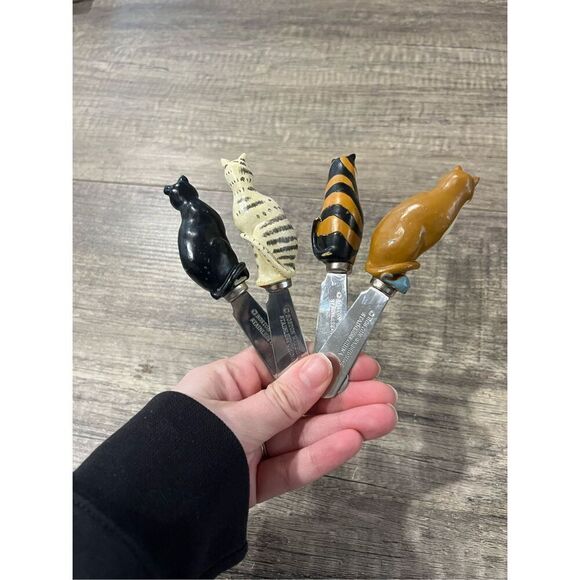 Set of 4 Boston Warehouse Cat Stainless Spreaders Cheese Charcuterie