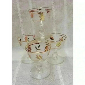 Set of 4-Vintage Libbey- Gold Leaf Frosted Coupes/Cordials/Goblets. Very, Very Good Condition. No chips or cracks. No fading or missing Gold Leaf.