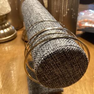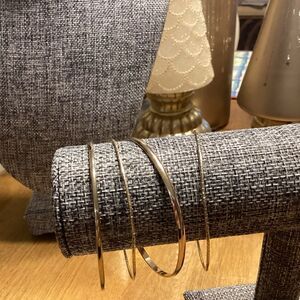 All these bangles have an inside diameter of 3 3/4” so they will fit up through and including an 8” wrist. Two are bright shiny finish and two have a textured finish. Please zoom in to see the patterns.