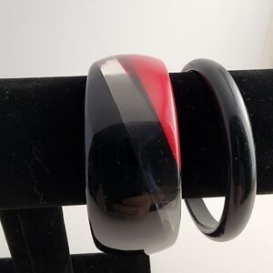 Set of 4 bangle bracelets thick black is metal other 3 plastic