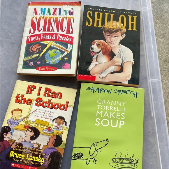 Collection of five engaging children's books. Includes titles like 'Amazing Science' and 'Shiloh'. Perfect for young readers.