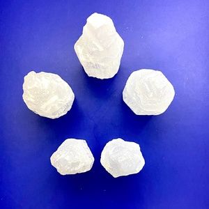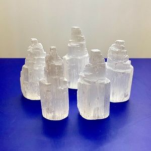 Set of 5 natural selenite crystal standing towers. Each tower is unique and catches light beautifully.