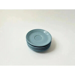 Set of 5 Fiestaware Homer Laughlin Ceramic Baby Blue saucer plates. Dishwasher safe and stamped with Fiestware on the bottom. Lead free glaze.