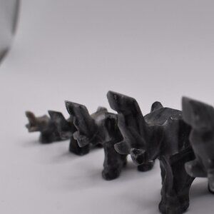 Set of 5 Hand Carved Elephant Figurines Black Marble Stone Graduated Sizes