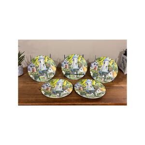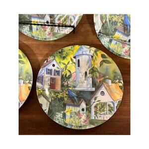 Set of 5 Italy Melamine Plates Birdhouse Garden Design Made in Italy Cottagecore