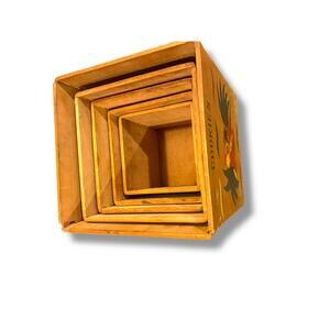 Set of 5 Nesting Wooden Canisters Vintage Rooster Cookies Flour Sugar Coffee Tea