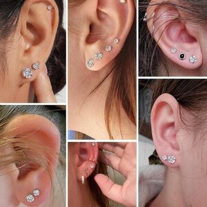 Set of 5 Pairs of Hypoallergenic Stainless Steel CZ Stud Earrings 3-8mm - NIB