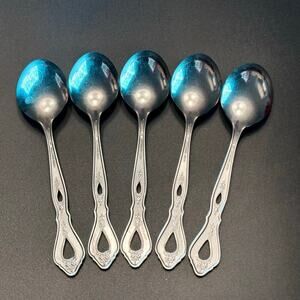 Set of 5 ROGERS VTG. Autumn Ballad (Stainless) Place/Oval Soup Tablespoons KOREA