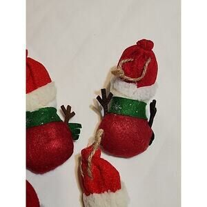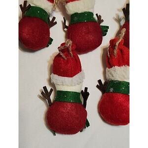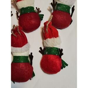 Set of 5 Red Buffalo Check Felt Snowman Ornaments with Taboggan 5.5"