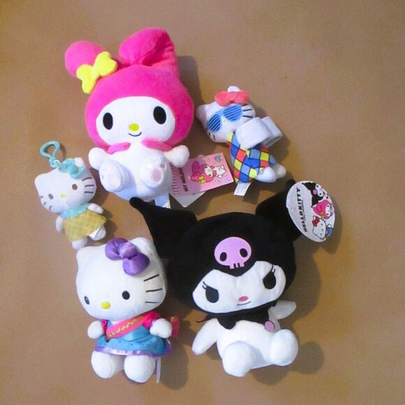These plushies are like the ultimate squad goals—My Melody, Kuromi, and Hello Kitty, ready to bring charm, sass, and cuteness overload to your space.