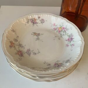 Set of 5 Theodore Haviland soup Or salad plates Floral Dinnerware Set Gold Trim