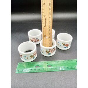 Set of 5 Town and Country Linen Corp Porcelain Floral Napkin Rings Fifth Ave. NY
