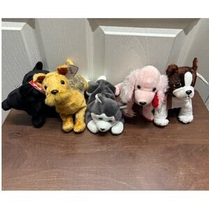 Set of 5 Ty Beanie Babies Black Brown Gray Pink White Dogs Stuffed Animal Plush