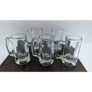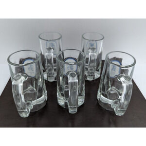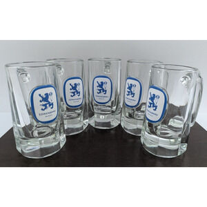 Set of 5 VINTAGE LOWENBRAU Heavy Glass Beer Steins 10 OZ. 5.5" Tall