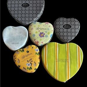 Set of 5 Vintage Brighton Tins - some with inner cards/ most do not. 2 lg/3 med size - See pics. Light blue tin has slight dent on back SEE PICS!! Collectible