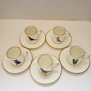 Set of 5 Vintage Hammersley & Co Bone China Bird Demitasse Cup and Saucer