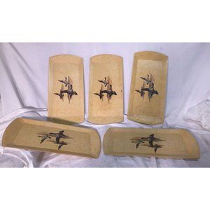Set of 5 Vintage Natural Wood Serving Trays Breakfast Tray - Mallard Duck Art
