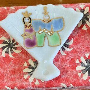 This set of 5 vintage porcelain chopstick rests is a must-have for collectors and enthusiasts of Japanese culture. Expertly crafted by skilled artisans in Japan, these chopstick rests are made from high-quality porcelain and come in a beautiful box for easy storage. Each chopstick rest features a unique design, making them perfect for adding a touch of elegance to your dining table. Whether you are using them for a special occasion or just for everyday use, these chopstick rests are sure to impress. Don't miss out on the opportunity to own a piece of Japanese craftsmanship.