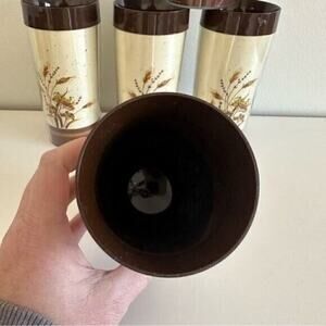 Set of 5 Vintage THERMO SERV WHEAT Drinking Glass Plastic Dried Grasses 1980s