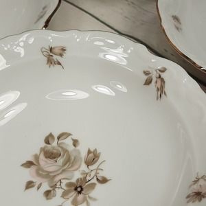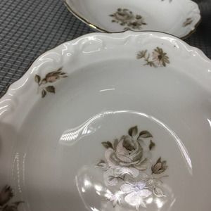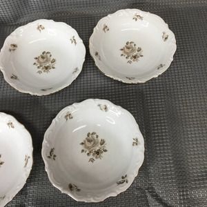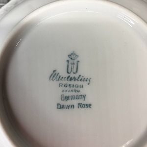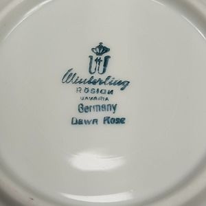 Set of 5 Vintage Winterling China Dawn Rose 5 1/2" Fruit/Dessert/Sauce Bowls Gold Trim. Made in Bavaria, Germany. All are in excellent condition with no chips, cracks or crazing. Gold trim is in excellent condition. Slight shelf/table wear on bottom rims. From a non-smoking home.