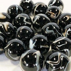 These Zebra Cobbles are opaque black with swirls of white on the surface.