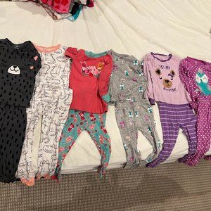 Set of 6 2-piece girls cotton PJs, 4 are Carter's, 2 are Children's Place brand. Excellent condition - no stains or wear and tear.