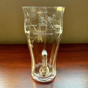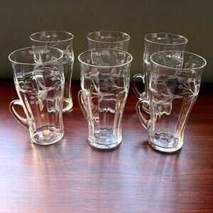 Set of 6 Antique Crystal Irish Coffee Mugs | Vintage Etched Crystal Elegant Hot Toddy Glasses | Dainty Chic Cut Crystal 10 oz Drink Glasses Hand-blown EUC. With flower motif.