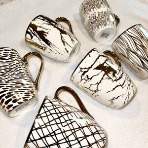 Price firm. Brand new and never used. Unique gold abstract designed mugs. Perfect for coffee or tea. Elegant and modern style.