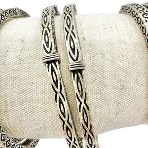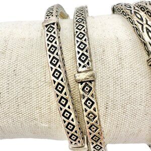 Set of 6 Bracelets Stretch Bangles Silver Celtic Look 2 ea of 3 Patterns NWOT