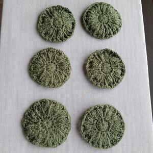 Set of 6 Coasters 4" crochet cable pinwheel round green chunky handmade decor
