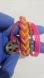 Brighten up your outfit with this vibrant peace sign bracelet. Featuring a mix of pink, orange, and yellow colors, this accessory is perfect for adding a pop of color to any look.
