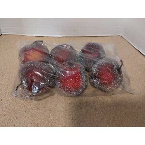 Set of 6 Decorative Glittery Floral Fashions Red Apples