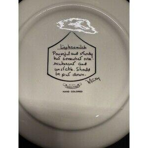 This set of 6 Delano Studio Hand Painted Plates are a vintage set of collector plates that showcase a unique and whimsical design. Each one is different. Made of ceramic and hand-painted with a multicolor finish, these round plates feature a humorous legend on the reverse and are signed by the artist. Produced in the late 20th century on Long Island, United States, these plates are a part of the Mid-Century Modern style and are handmade in an art pottery production technique. Excellent for serving cheese & wine! Please note- these are pre-owned but in great shape. No cracks or chips. Please make sure to look at pics closely. Thanks for looking!