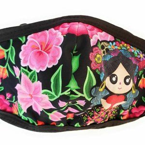 Frida Kahlo Floral Face Mask With Tie Straps