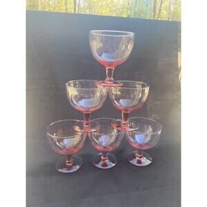 Set of 6 Fun Vintage Pink Glass Ice Cream Dishes/Margarita Glasses