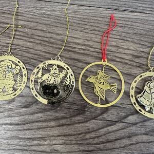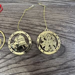 Set of 6 Gold Finish Brass Christmas Ornaments 3D Christmas Tree Hanging Decor