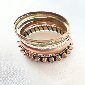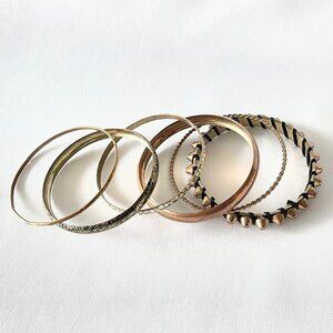 Add a touch of shine to your stack! 💫 This elegant bracelet set features 6 gold-tone bangles in mixed widths—some thin, some bold.