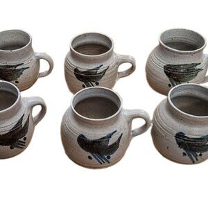 Set of 6 Hand Thrown Studio Pottery Stoneware 6 Ounce Mugs Never Used