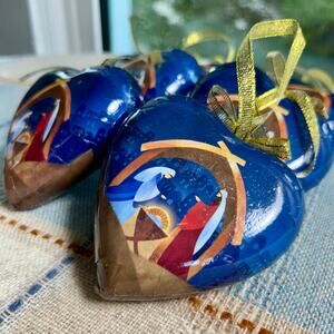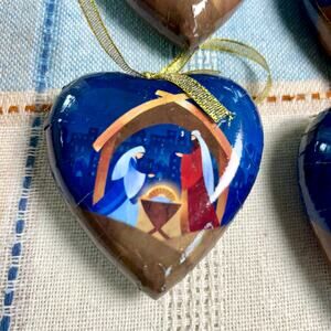 Set of 6 Heart-Shaped Nativity Ornaments – 3.5” Christmas Decor